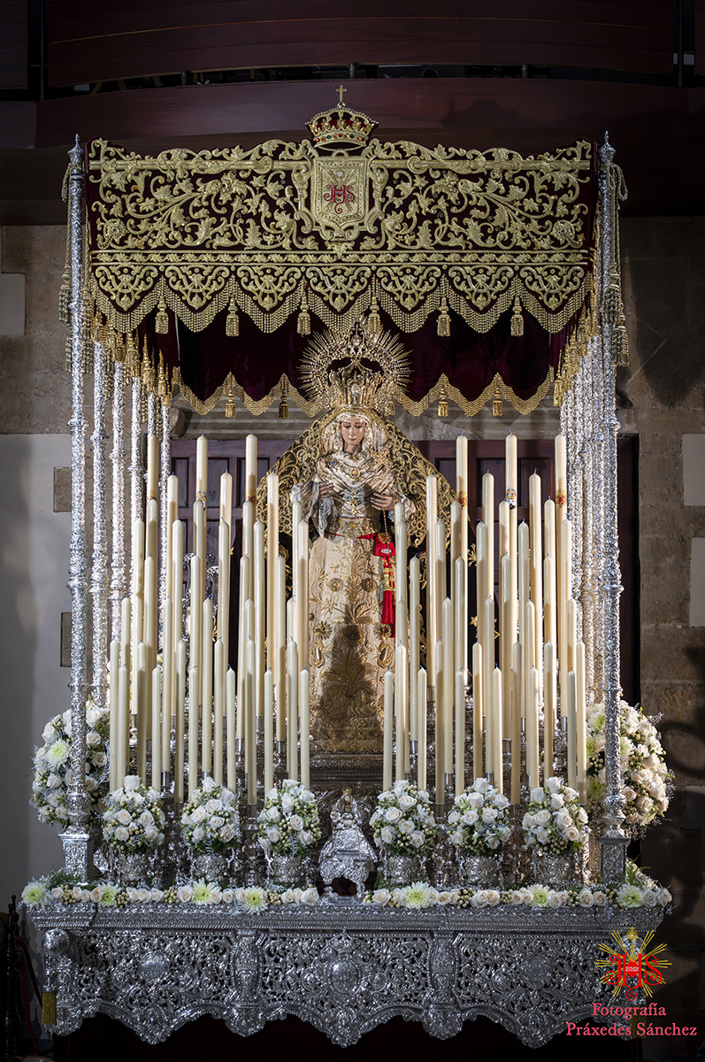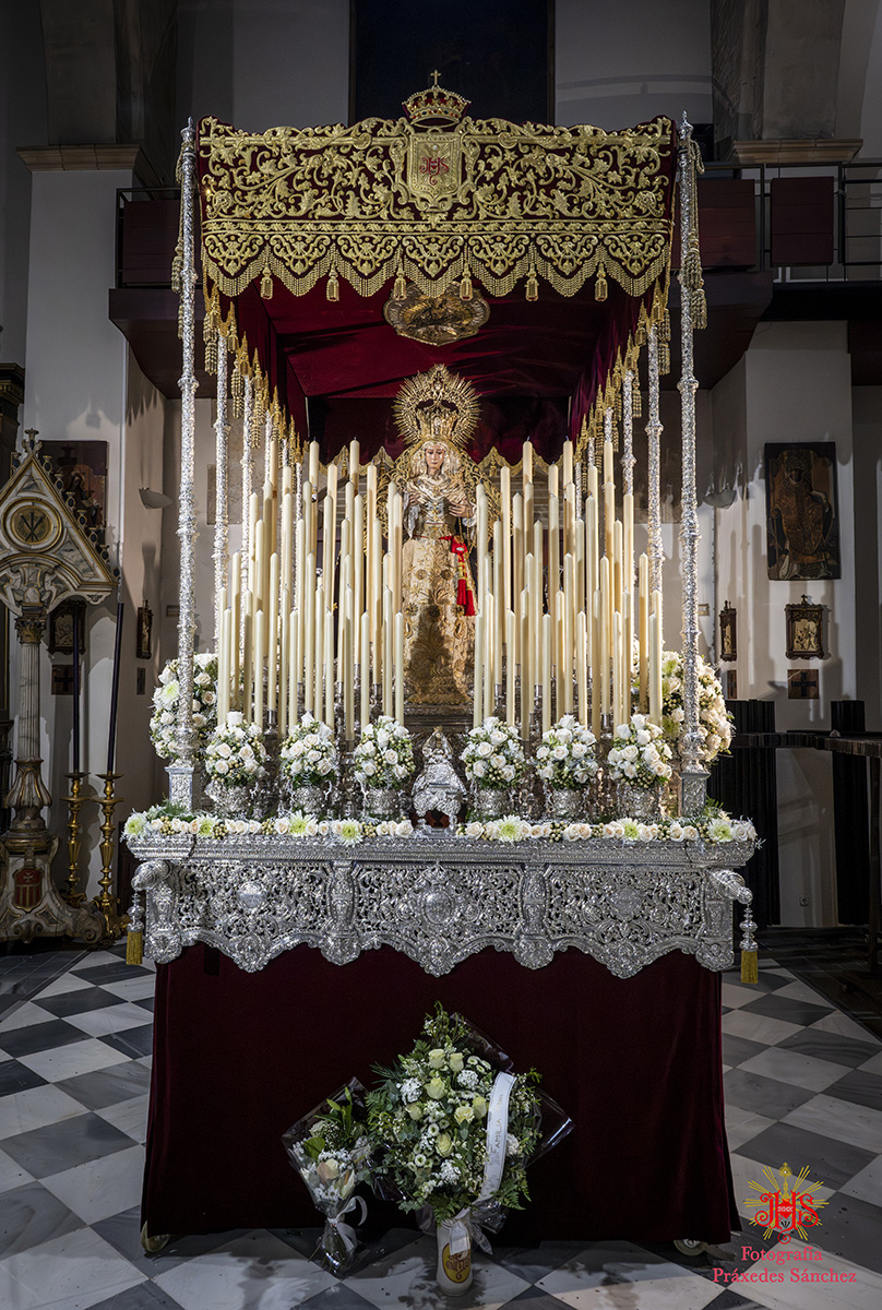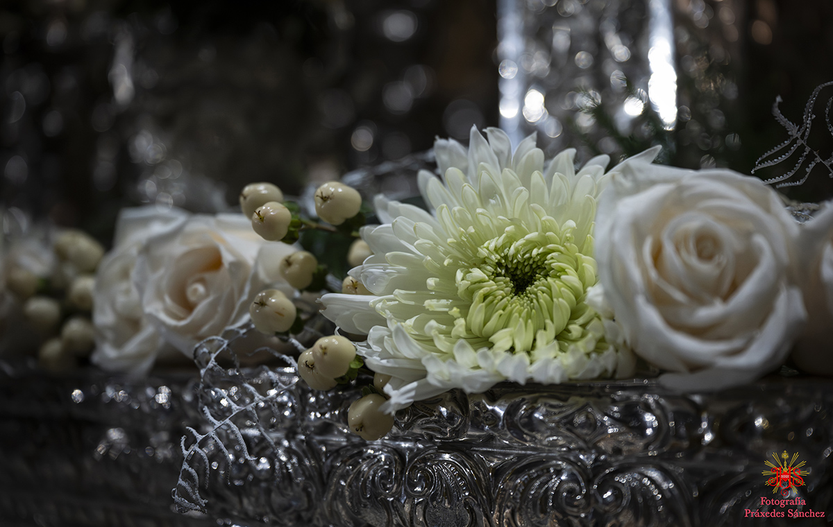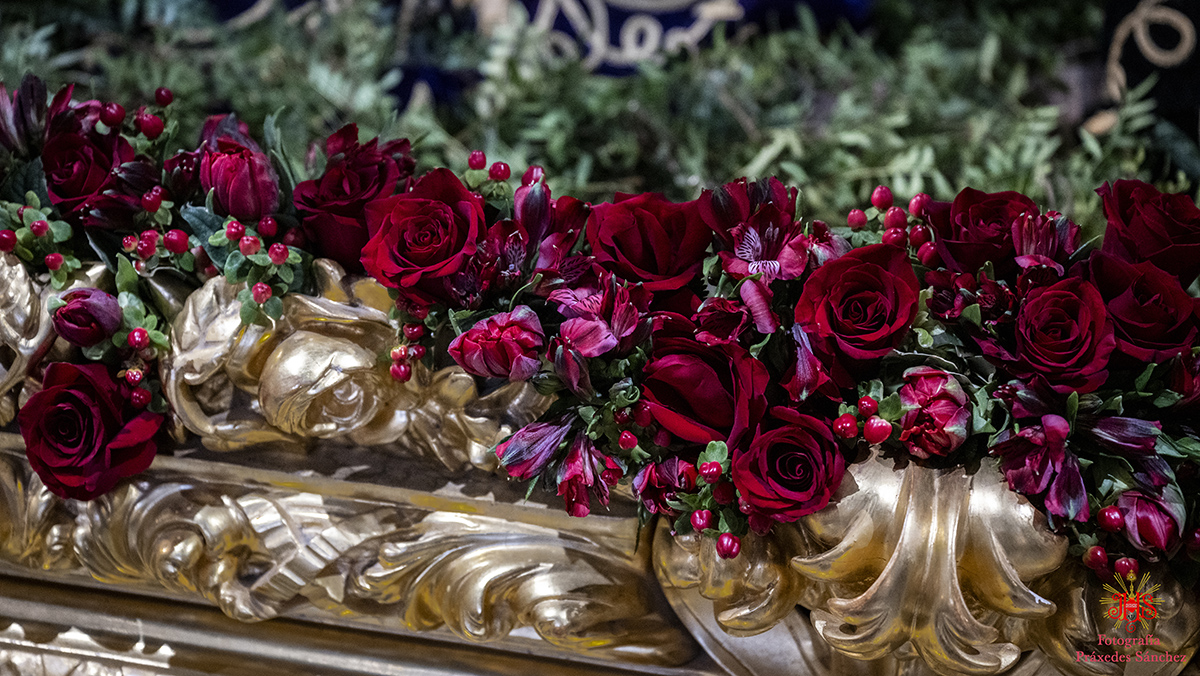 En lo que respecta a nuestros sagrados titulares, el paso de Nuestro Padre Jesús de la Divina Misericordia estaba exornado por allium morados, rosas rojas, eryngium, alstroemerias moradas, calas blancas, hiedra y helecho coral, mientras que en el paso del Santísimo Cristo de las Siete Palabras y María Santísima de los Remedios el exorno floral se componía de rosas rojas, tulipanes rojos, alstroemerias rojas, tallos de hypericum rojos, pittosporum y helechos y por último el palio de Nuestra Señora de la Cabeza contaba con flores rosas champán, dendromios, hypericum, crisantemos blanco, pittosporum y helecho real blanco.