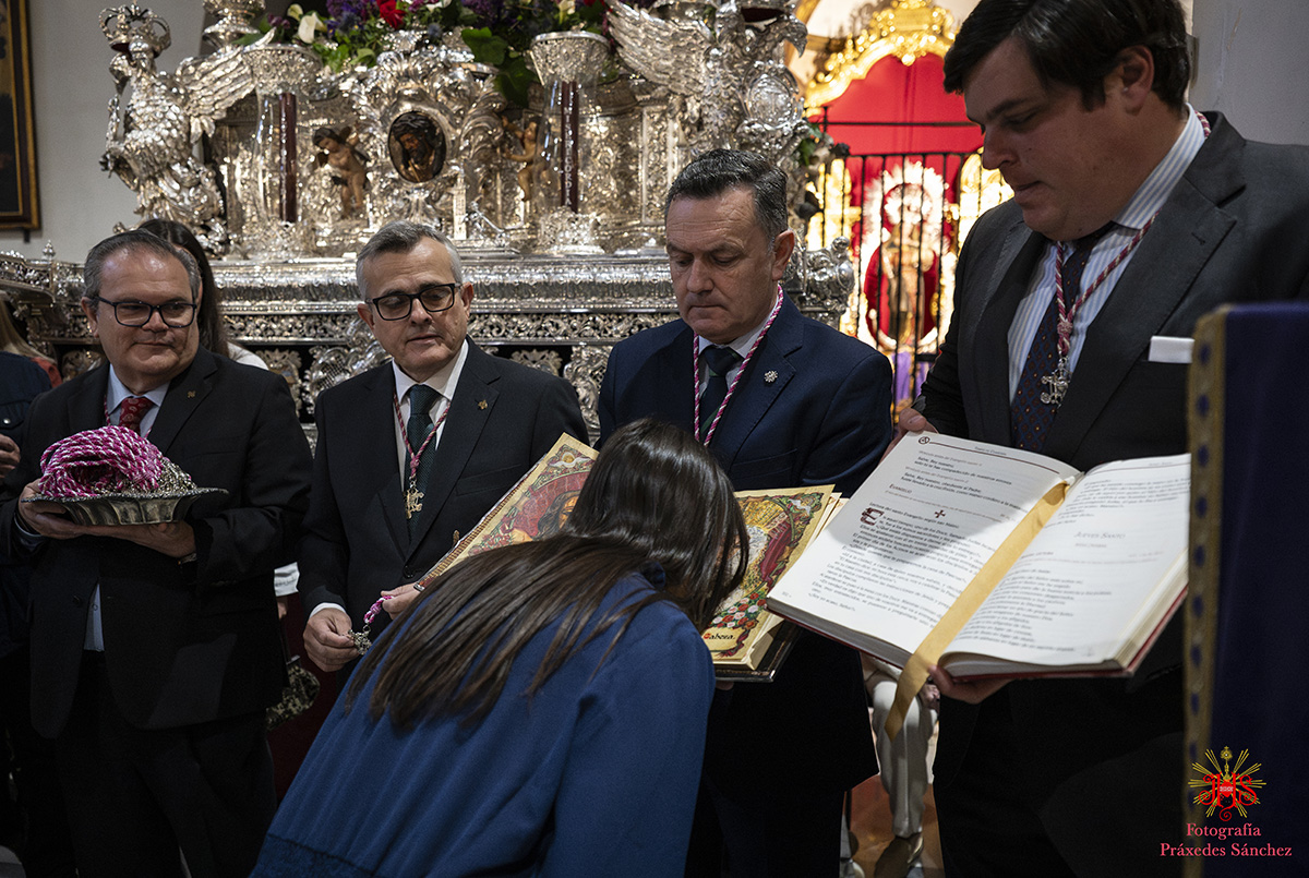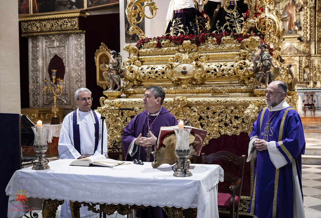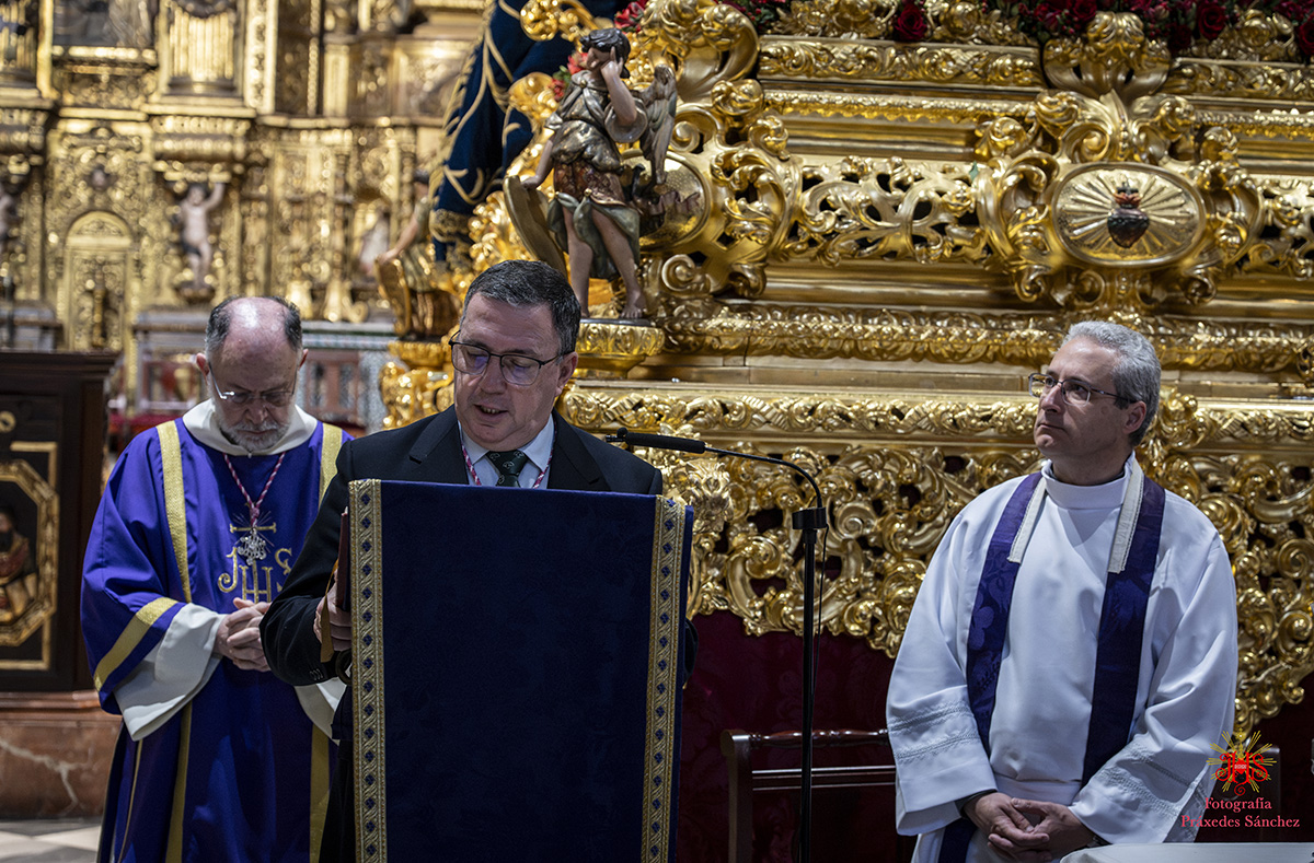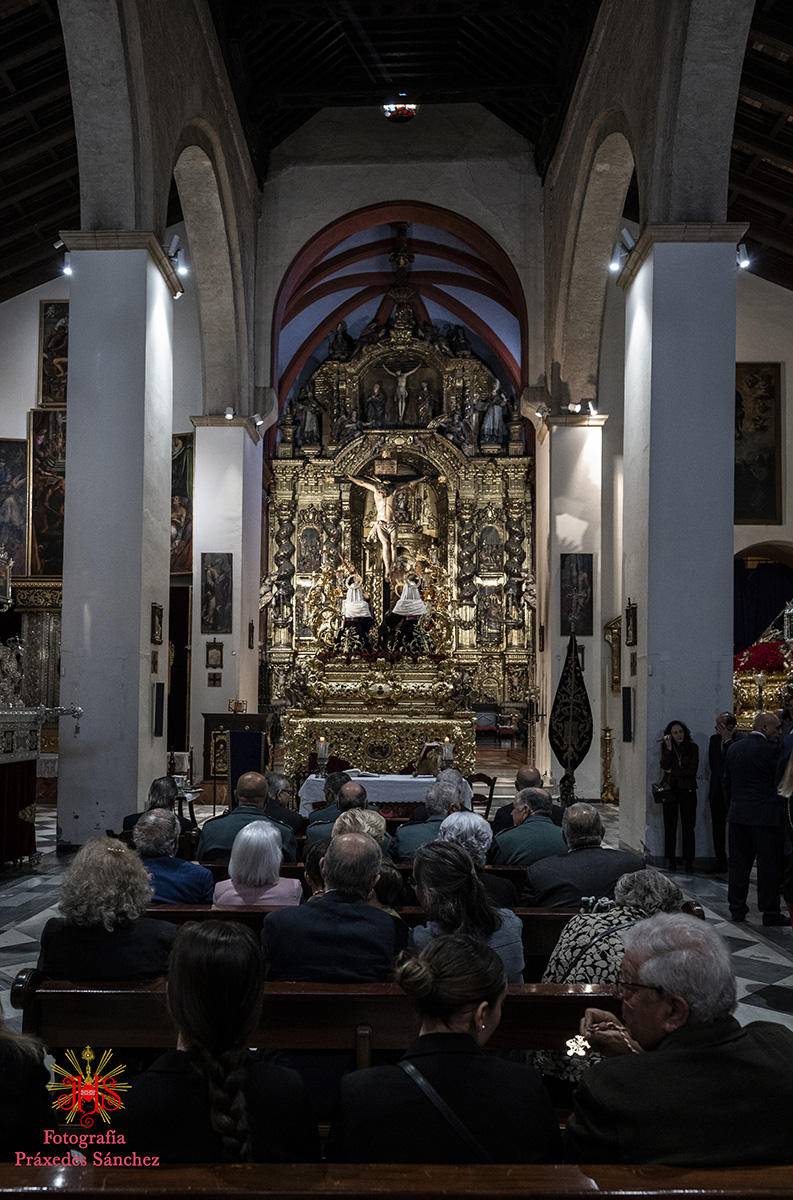 Amanecía un nuevo Miércoles Santo en el barrio de San Vicente con un gran sol que avecinaba un día radiante y de disfrute desde los más pequeños a los más veteranos. A las 9.15 horas se abrían las puertas de nuestro templo y comenzaban a llegar los primeros grupos de hermanos, dando comienzo la misa preparatoria de la estación de penitencia a las 10.00 horas, cuya cátedra presidió nuestro hermano el reverendo don Carlos Coloma Ruiz, párroco de San Vicente y director espiritual de la archicofradía. A su finalización recibimos en nuestra nómina a un nutrido grupo de hermanos, a los que se dirigió nuestro hermano mayor. Como es tradición, durante la misma nos acompañó un nutrido grupo de la comandancia de la Guardia Civil de Sevilla, ya que es hermana mayor honorífica de la archicofradía y con la que nos unen grandes lazos de fraternidad.