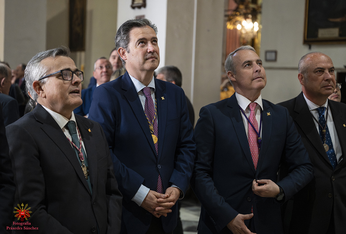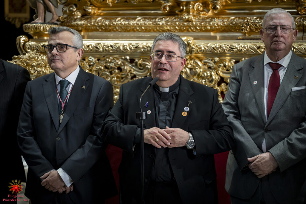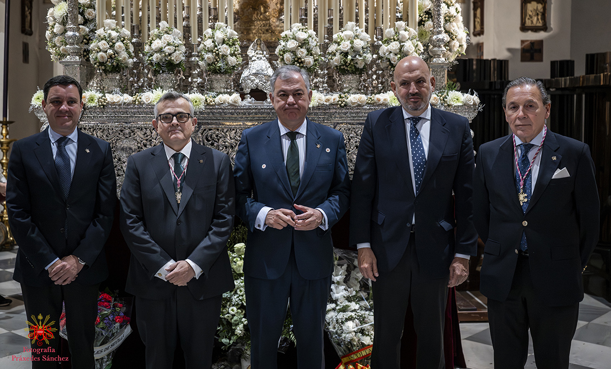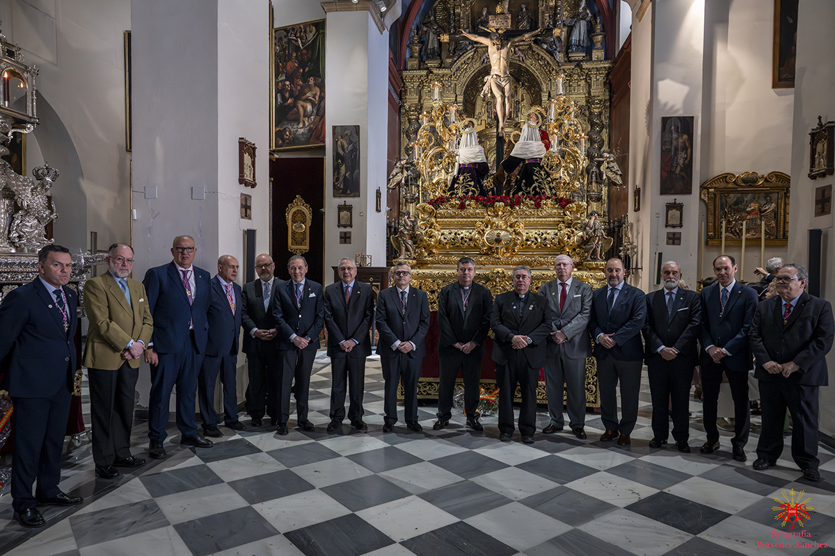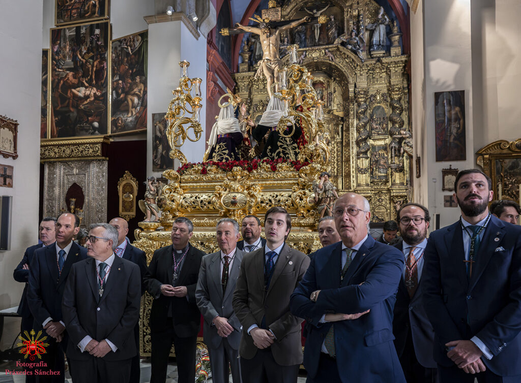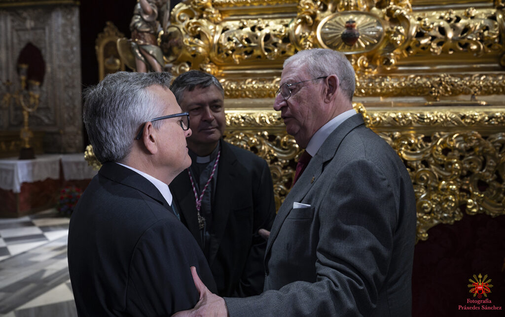 A media mañana tuvimos el honor de recibir al delegado diocesano de la archidiócesis de Sevilla y hermano de nuestra corporación, don Marcelino Manzano, quien se disculpó por la imposibilidad de acudir del señor arzobispo, quien nos recibió en la Santa Iglesia Catedral durante nuestra estación de penitencia. Asimismo, lo acompañó el presidente del Consejo de Hermandades y Cofradía de Sevilla, Francisco Vélez, varios consejeros y el delegado del Miércoles Santo. Todos ellos nos desearon una buena y fructífera estación de penitencia.