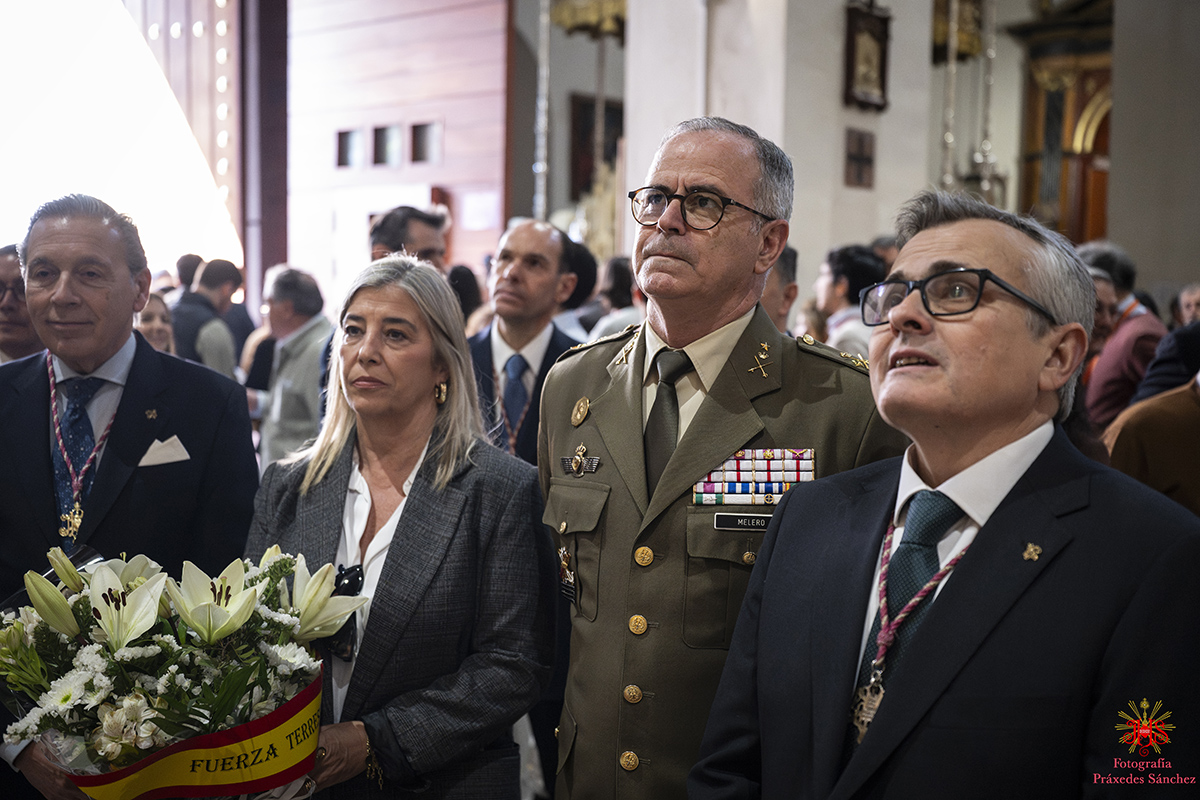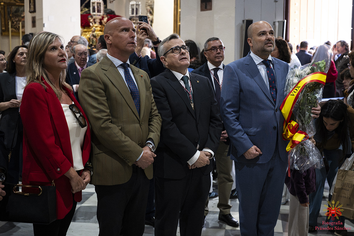 Durante la mañana acudieron distintas autoridades, destacando la del excelentísimo alcalde de Sevilla, José Luis Sanz, acompañado por el teniente de alcalde y delegado de fiestas mayores, Manuel Alés, así como distintos concejales del ayuntamiento de nuestra ciudad, destacando la tradicional visita de la querida Amidea Navarro junto a Carmen Cruzado Candau, y el grupo municipal de VOX. Además tuvimos la suerte de recibir en nuestra parroquia al Teniente General de la Fuerza Terrestre, Carlos Melero Claudio, junto a su comitiva.