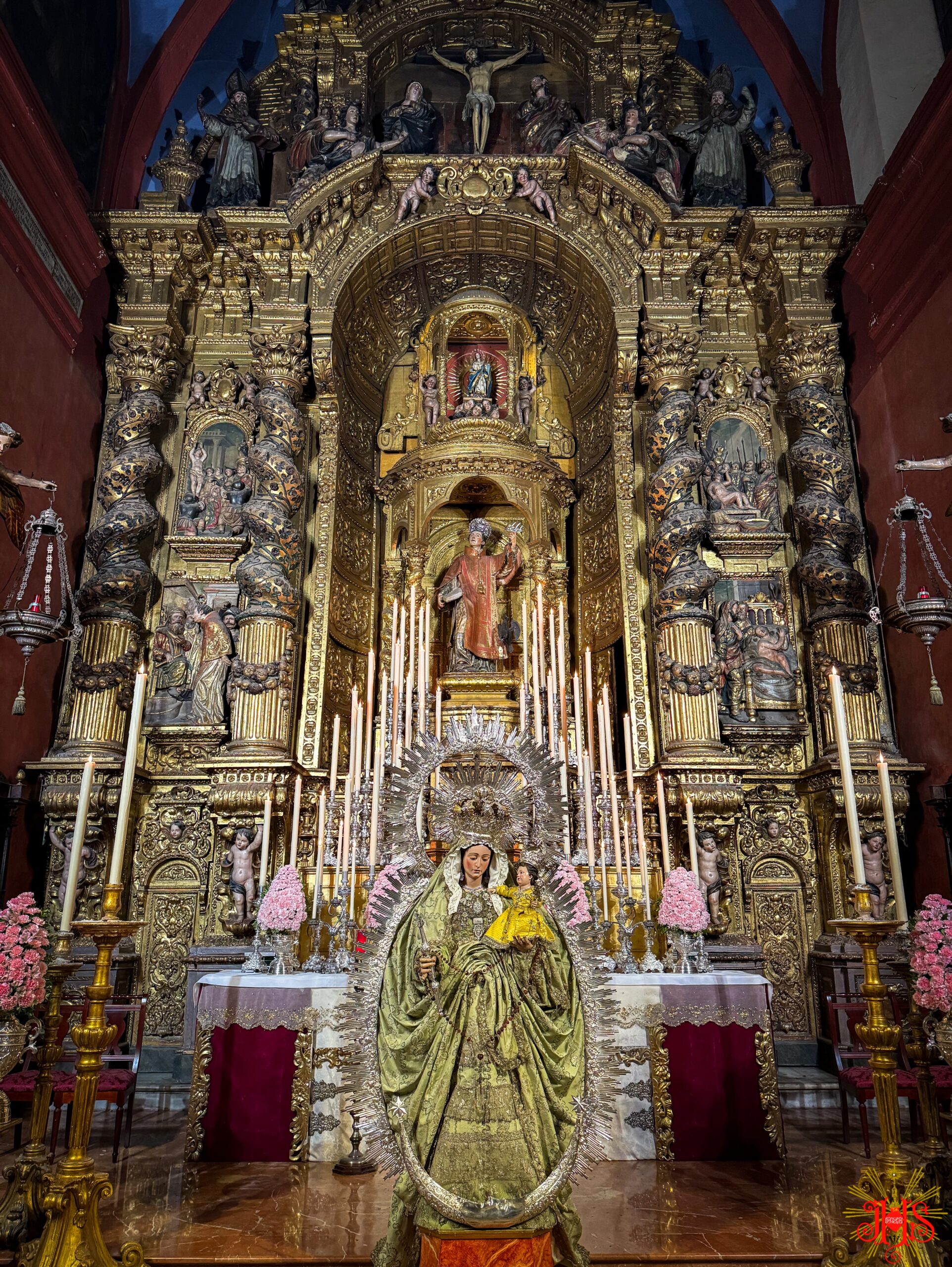 Para finalizar, el domingo día 6 de octubre, celebramos el tradicional besamanos, para el cual se dispuso a Nuestra Señora del Rosario en el presbiterio de la parroquia, flanqueada por dos columnas coronadas por sendas jarras de claveles rosas. Durante la jornada, el acto albergó a numerosos fieles y devotos que se acercaron a San Vicente para venerar a la patrona de la feligresía.