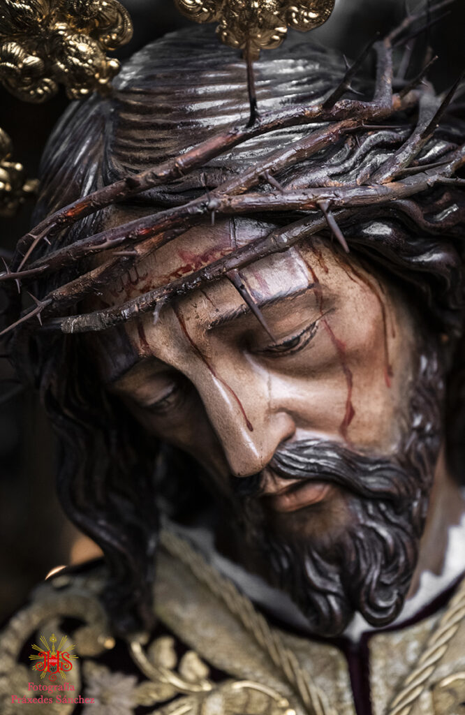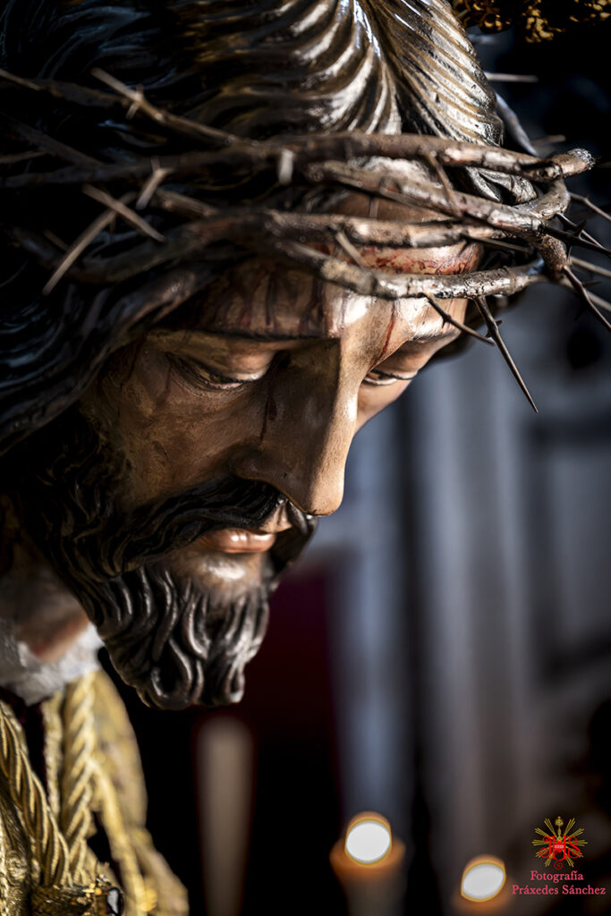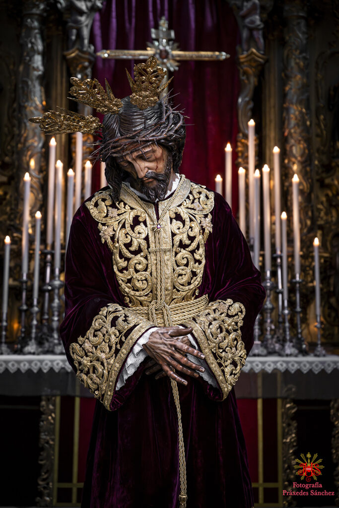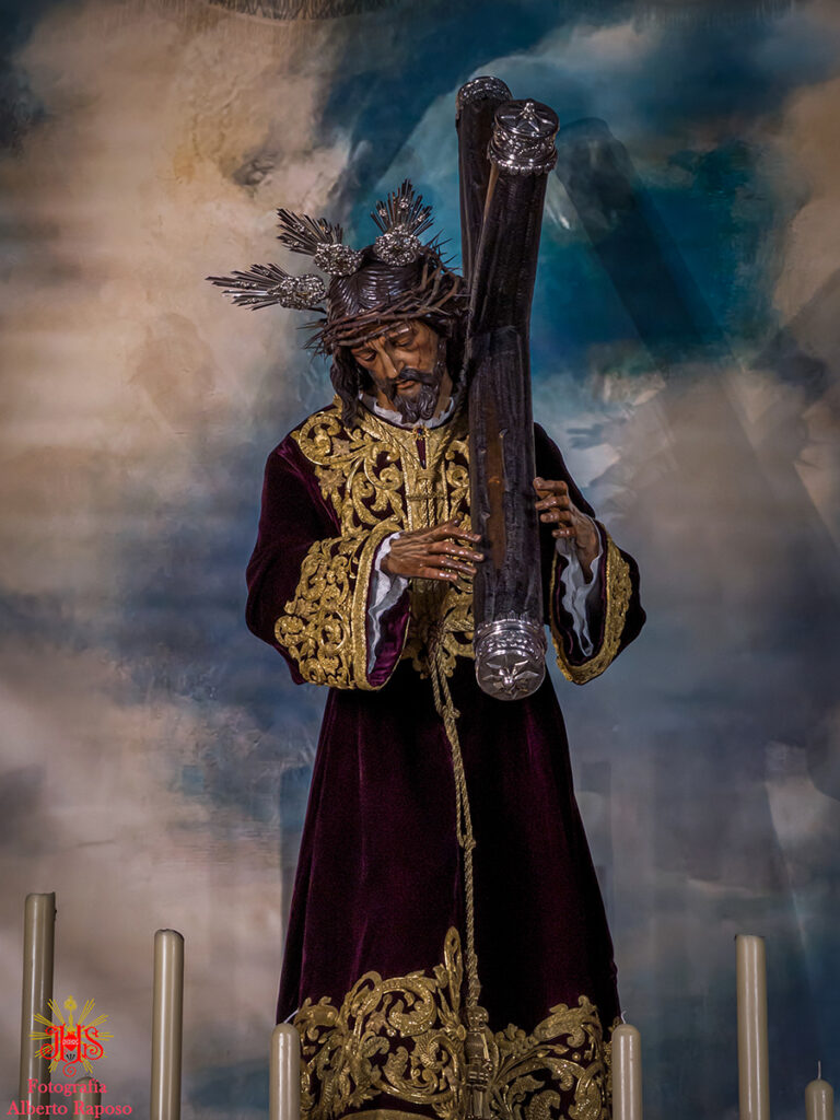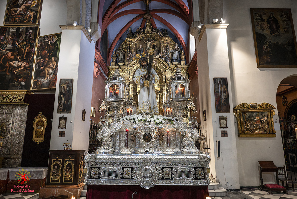 Respecto del altar que presidió la sagrada imagen, nuestra priostía dedicó este año su trabajo a presentarnos a la sagrada imagen en su camino hacia el monte Calvario, empleando un dosel compuesto con un cortinaje morado, símbolo de la penitencia, que se abría y mostraba la calle de la Amargura, a través de un fondo pictórico y un camino agreste y seco salpicado de cardos y helechos como muestra del martirio de Jesús, portando el Señor los atributos pasionistas. Para la ocasión el altar estaba completado por un exorno de flores compuesto por alhelíes, claveles, erigium, limonium y crisantemos.