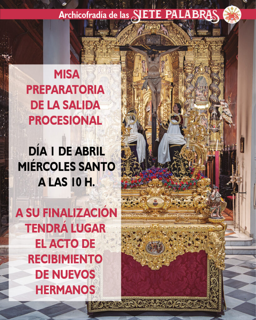 En lo que respecta al Miércoles Santo, nuestra parroquia abrirá sus puertas a partir de las 9.30 horas para recibir a los primeros hermanos de cara a la misa preparatoria que se celebrará, Dios mediante, a las 10.00 horas y oficiada por nuestro párroco y director espiritual, nuestro hermano, el Reverendo Señor Don Carlos Coloma Ruiz. A su finalización y tras el acto de recibimiento a los nuevos hermanos, San Vicente se abrirá al público para recibir a todos los fieles y devotos que quieran ver nuestros pasos preparados para realizar la estación de penitencia hasta las 14.00 horas.