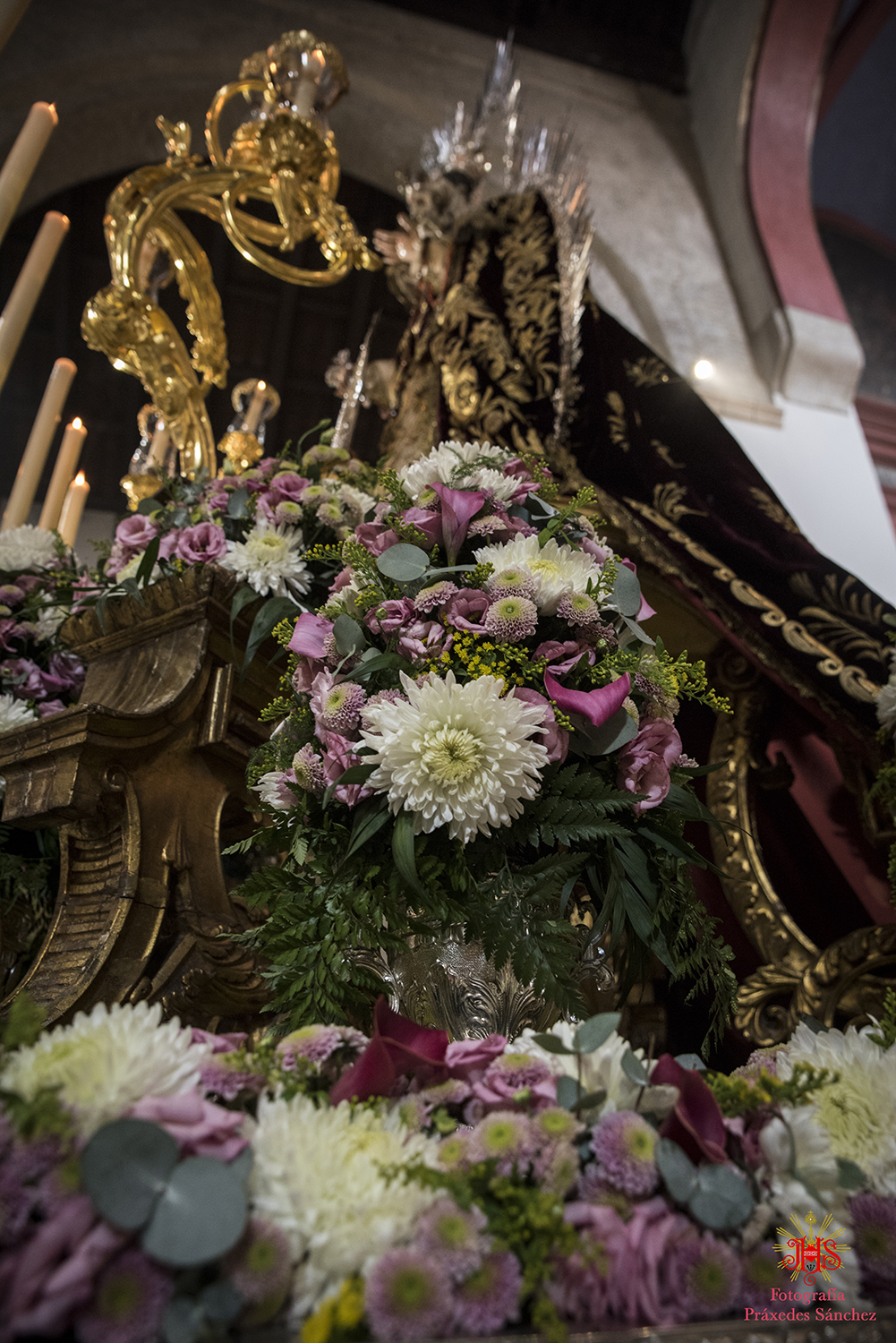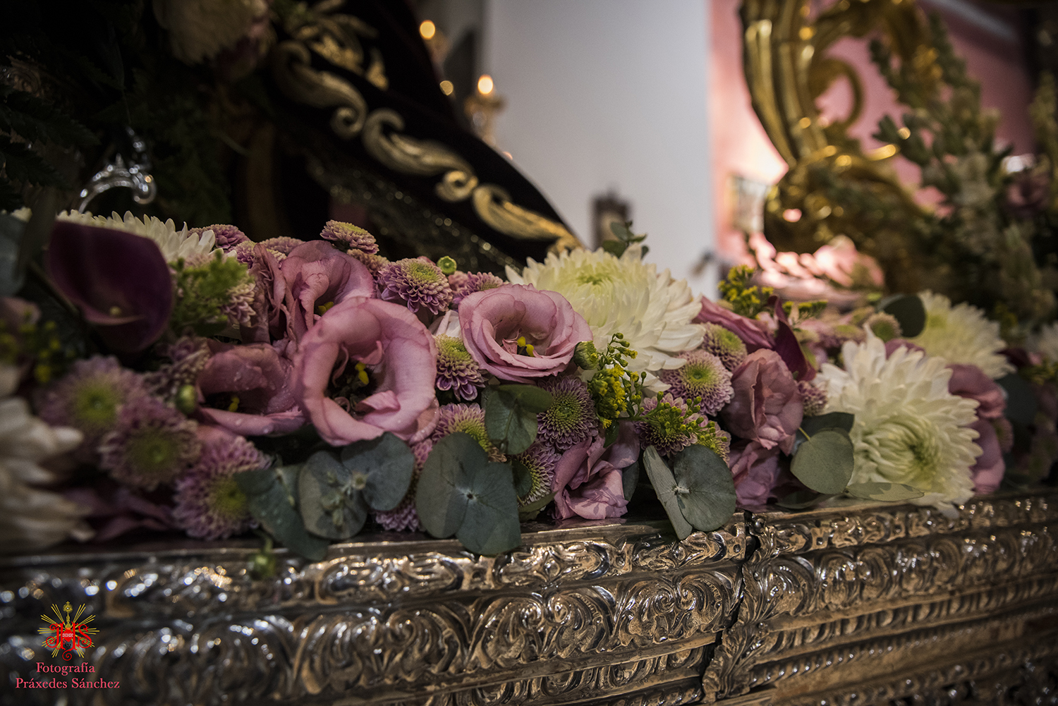 Para la ocasión Nuestra Señora del Rosario portaba su conjunto bordado, obra de Manuel María Ariza en 1863, compuesto por manto burdeos, saya y traje del Niño Jesús. Además, su exorno floral constaba de lisianthus, mini cala, nardos, margaritas, solidago y crisantemos.
