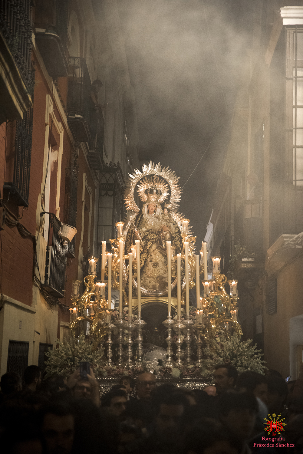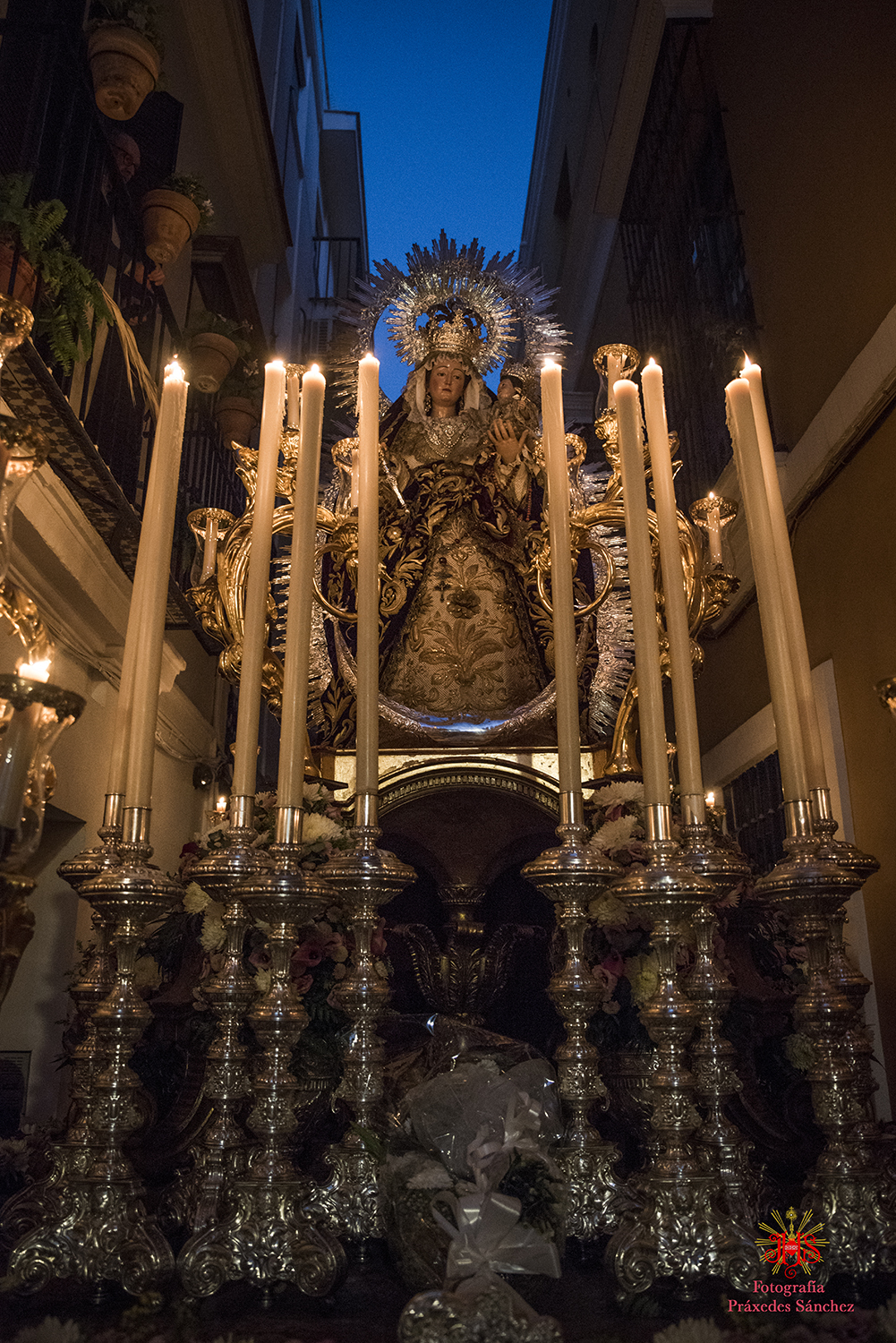 La procesión discurrió por calles de la feligresía que fueron recuperadas para el itinerario tras muchos años expeditas, permitiendo contemplar a la Santísima Virgen en un entorno cerrado, enmarcado en las fachadas de lugares tan señeros como, Redes, Pascual de Gayangos o Martínez Montañés, viviéndose en esta última, el momento álgido de la procesión en el que la Banda de Música del Maestro Tejera interpretó la versión cantada de “Pasan los Campanilleros” por el I centenario de la creación de dicha composición.
