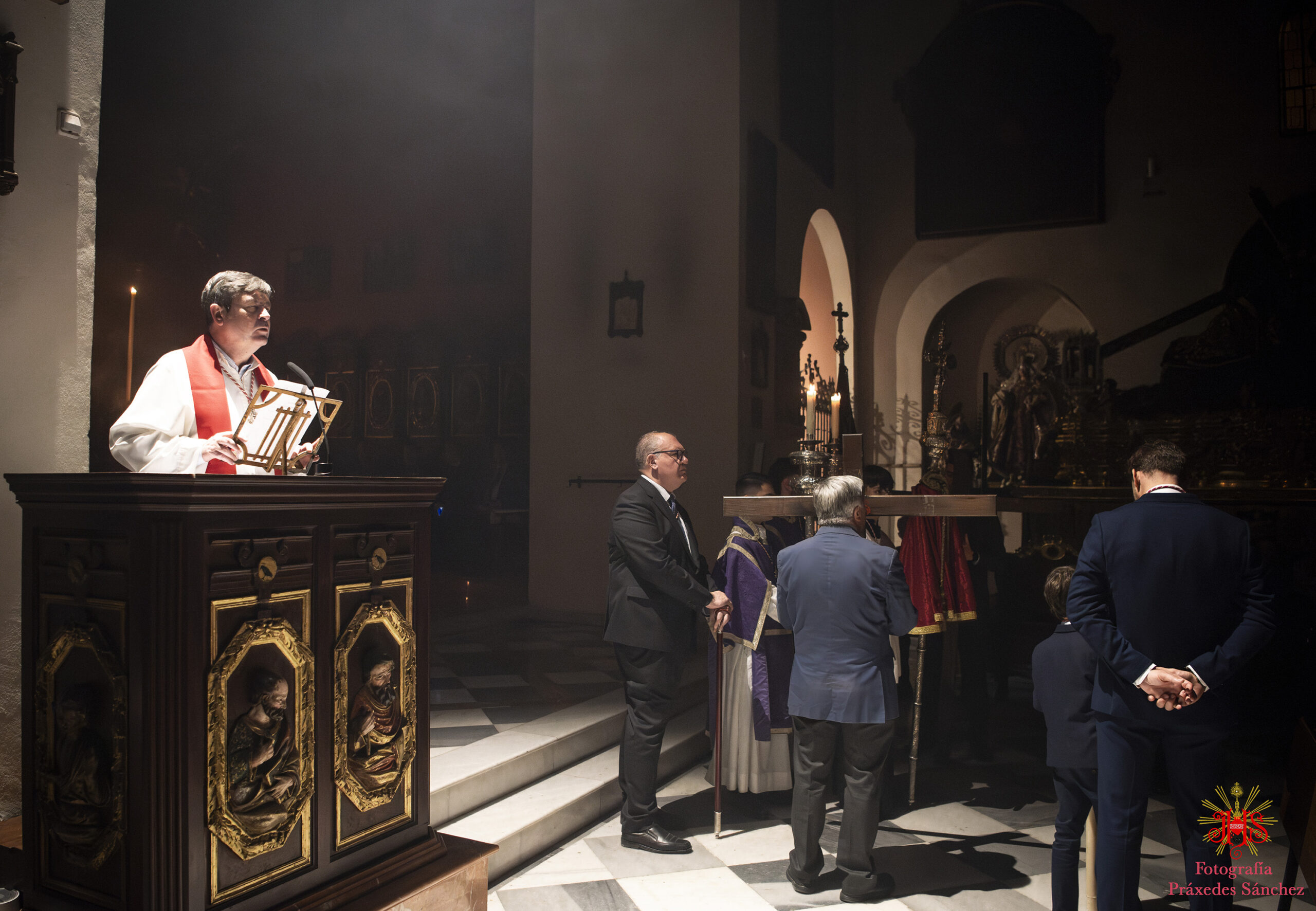 Finalizada la misa parroquial, realizamos el ejercicio del Vía Crucis con el recogimiento que merecía la ocasión para posteriormente llevarse a cabo la subida al paso de Nuestro Padre Jesús de la Divina Misericordia, interpretándose varias saetas durante el traslado por las naves del templo.