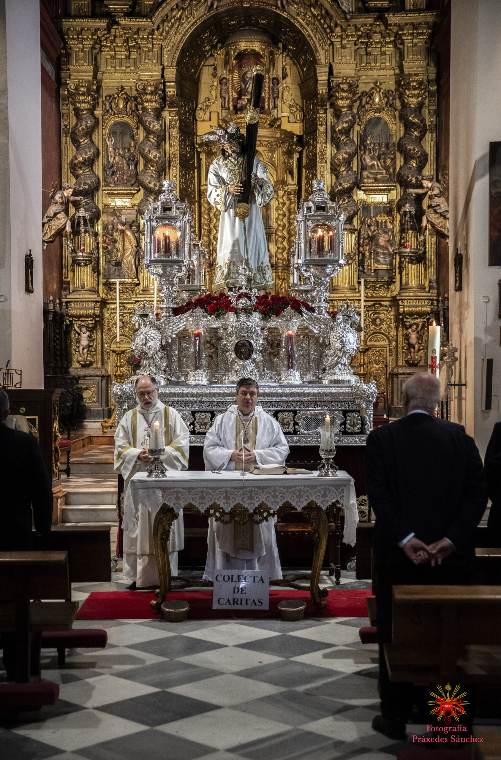 Una vez terminada la Semana Santa y para concluir la octava de Pascua, el 7 de abril celebramos la solemne función en honor a Nuestro Padre Jesús de la Divina Misericordia, coincidiendo con la festividad de la Divina Misericordia, instituida por San Juan Pablo II. Para la ocasión el Señor seguía estando en su paso, colocado en el presbiterio de la parroquia, portando la túnica de tisú de plata y bordada en oro por nuestro hermano Antonio Gómez, así como las potencias de plata y plata sobredorada, diseñadas y realizadas por Joaquín Ossorio. En esta ocasión la función fue oficiada por nuestro párroco y director espiritual, nuestro hermano don Carlos Coloma Ruiz que nos recordó el origen de la festividad y como el Señor a través de la misericordia nos enseña a perdonar y comprender al prójimo.