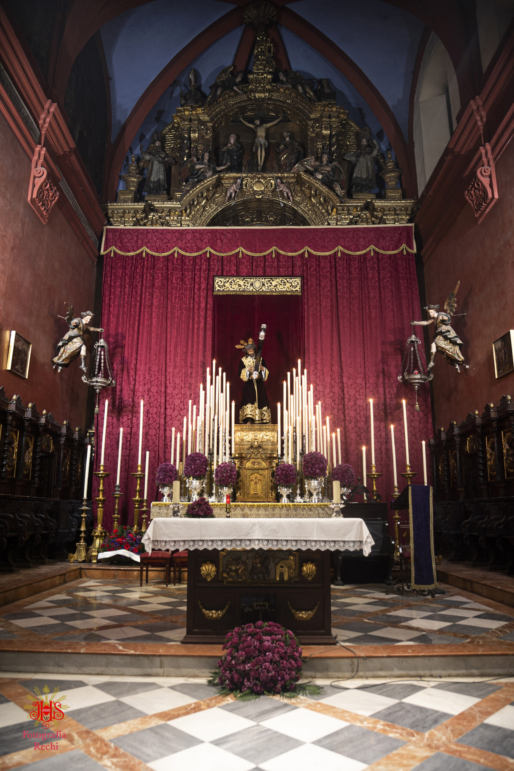 Inmersos en la Cuaresma y con la vista puesta en la Semana Santa que estaba por venir, a principios del mes de marzo se erigía Nuestro Padre Jesús de la Divina Misericordia para la celebración de su solemne triduo, en un altar efímero compuesto por un dosel y la gotera bordada en oro por nuestro hermano Antonio Gómez, inspirada en el antiguo techo de palio de la archicofradía.